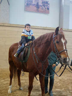 NOS SENTAMOS EN LAS GRADAS DEL PICADERO DONDE VIMOS UNA EXHIBICIÓN DE DE LOS ANIMALES QUE TRABAJAN CON LA GUARDIA CIVIL.